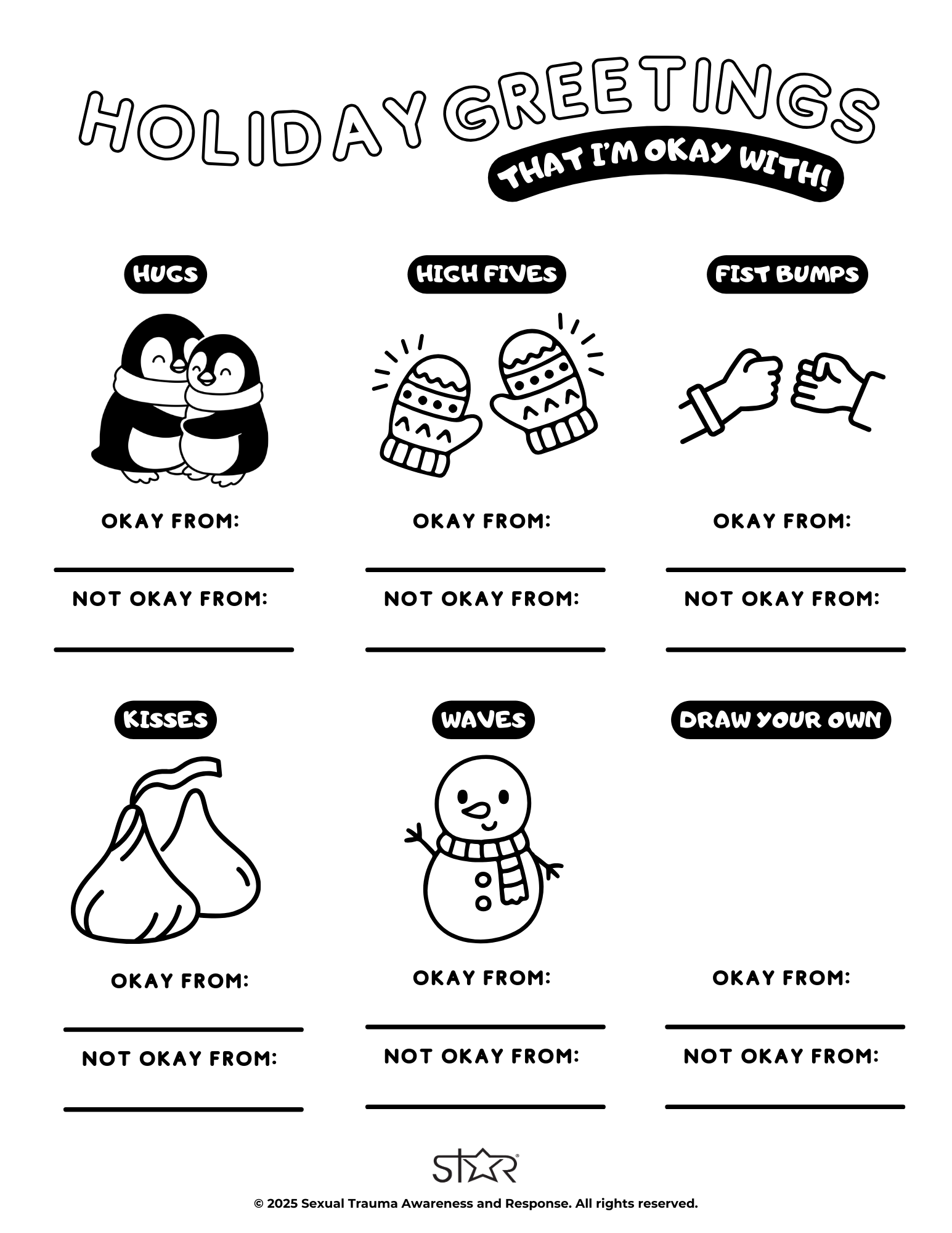 Resources Holiday Coloring Sheets K-12 Coloring Sheets Book List for Teens Bystander Intervention for Kids Relationship Playlist Starting & Ending Relationships Relationship Agreement Types of Dating Abuse Understanding Consent Sexual Health Information Sex Timeline Teen Safety Planning